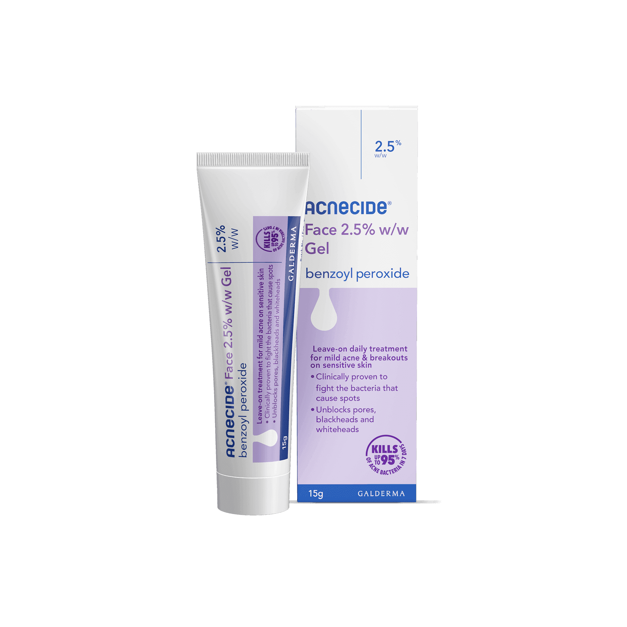 All Acnecide treatments are powered by the active ingredient, Benzoyl Peroxide. It helps kill up to 95% of spot-causing bacteria on your skin. Spot-causing bacteria growing in blocked pores can trigger irritation and the eruption of the blocked pore into a spot. Reduce the bacteria, reduce spots.